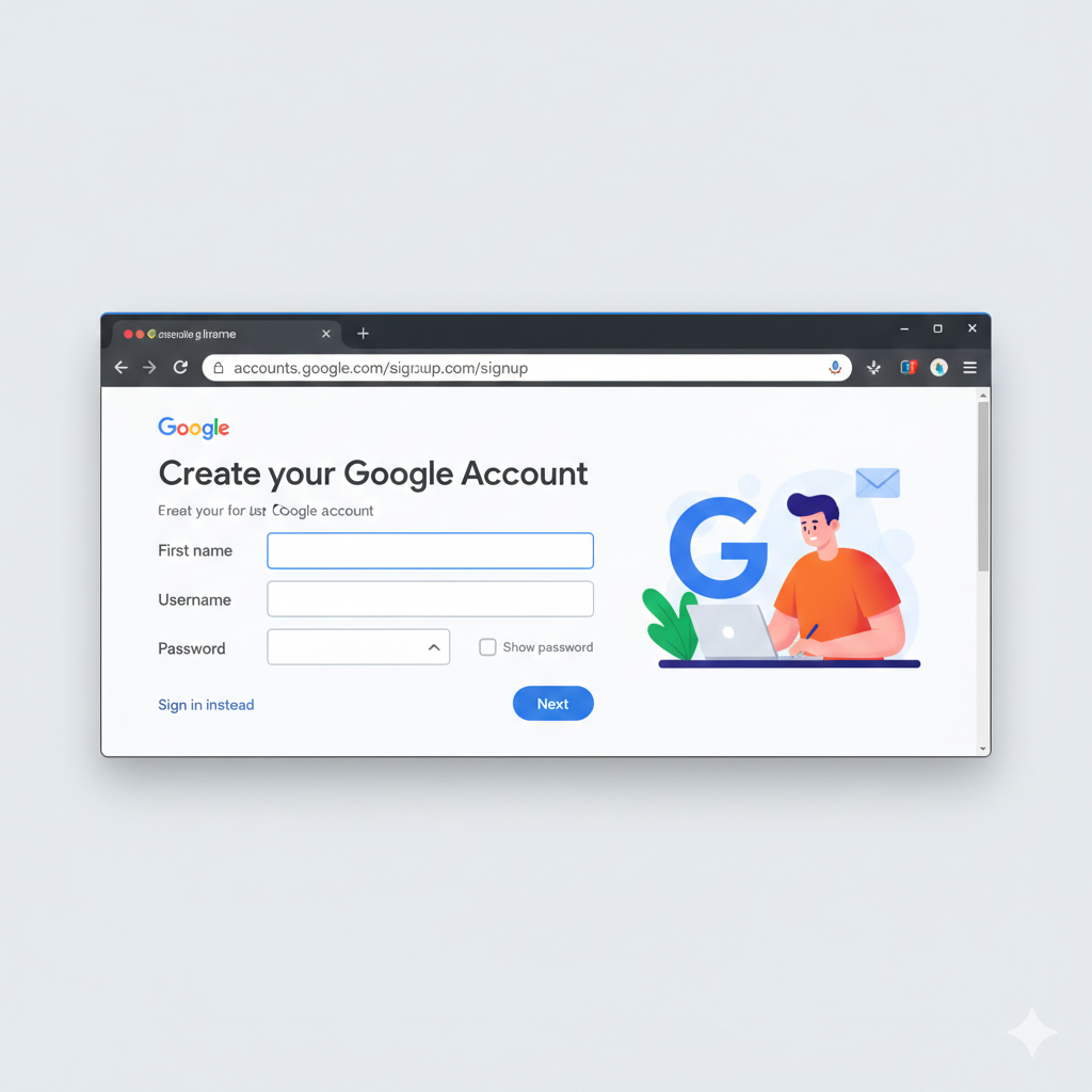 Open your web browser (Chrome, Firefox, Safari, Edge, etc.) and navigate to the official Gmail creation page. You can do this by typing gmail.com into your address bar or searching for “create Gmail account” on Google.